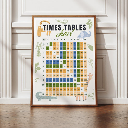 Times Tables Chart Poster - Animal: Educational Math Print For Kids, Multiplication Wall Art for Classrooms, Playrooms, or Bedroom Decor