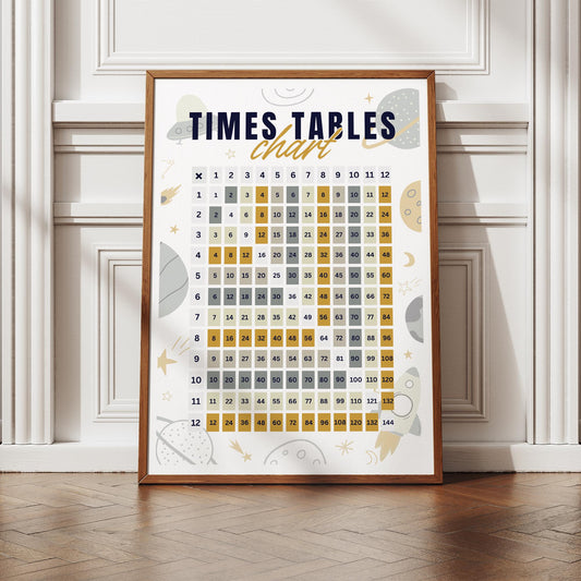 Space-Themed Times Tables Poster: Educational Math Print For Kids, Multiplication Wall Art for Classrooms, Playroom, Bedroom Decor