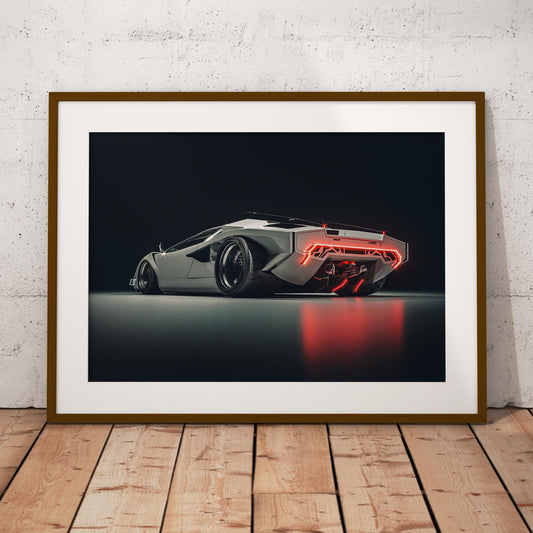 Eve Countach Poster: Futuristic Supercar Rear View Print, Sleek White Concept Car Wall Art, Gift For Car Lover, Garage & Home Decor