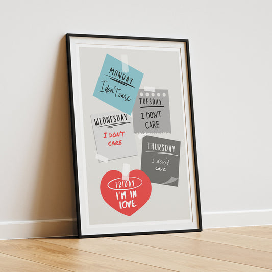 Friday I'm In Love - Post It Note Print: The Cure Lyric Poster, Song-Inspired Wall Art, Iconic Music, Alternative Home Decor Gift, Retro