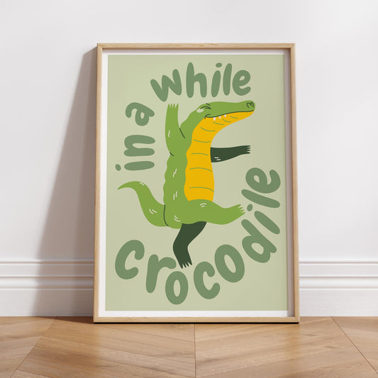 In A While Crocodile Poster: Kids Room Wall Art Cute Animal-themed Print for Childrens Bedroom or Nursery Decor, Colourful Print