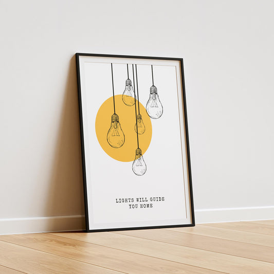 Lights Will Guide You Home Poster - Coldplay Inspired Wall Art, Hanging Lights Print, Quote Poster, Home Decor, Lyric Print, Music Lover Art