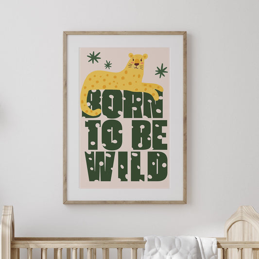Born To Be Wild - Leopard Poster: Kids Room Wall Art Jungle-themed Print for Childrens Bedroom or Nursery Decor, Colourful Animal Print