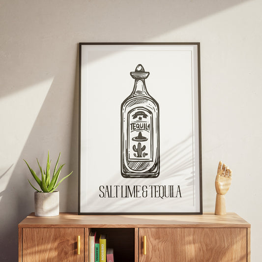 Salt, Lime & Tequila Bottle Design Poster, Bar Poster, Modern Kitchen Poster, Kitchen Decor, Home Bar, Kitchen Wall Art, Tequila Lover Gift