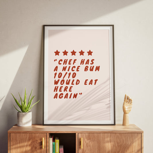 Chef Has A Nice Bum, Would Eat Here Again Kitchen Print, Five Star Poster, Home Decor, Wall Art, High-Quality Print, Chef Quote Poster