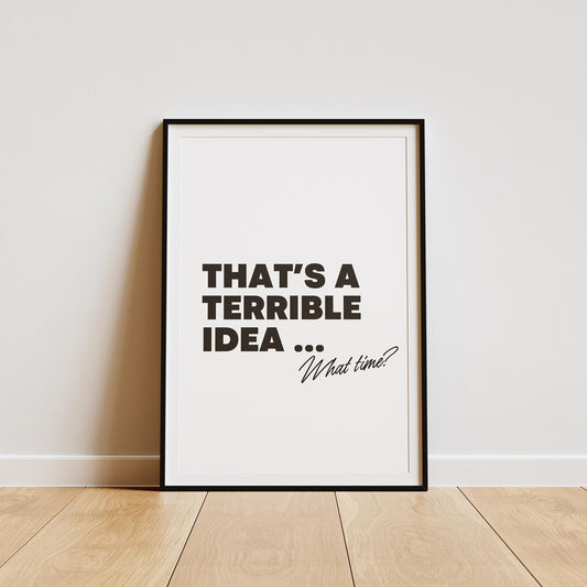 That's A Terrible Idea - Bold Poster: Funny Inspirational Poster, Unique Home Decor, Cool Print, Fun Quote Poster, Home Wall Art, Home Decor