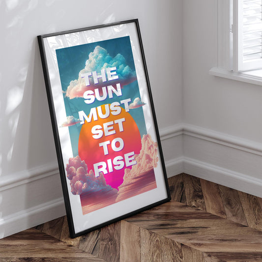 The Sun Must Set To Rise Poster 01 - Coldplay Inspired Wall Art, Graphic Design Art, Quote Poster, Home Decor, Lyric Print, Vibrant Home Art