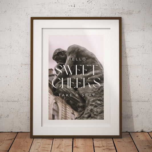 Sweet Cheeks - Sitting Statue Poster: Unique Bathroom Print, Toilet Poster, Bathroom Wall Art, Toilet Bathroom Poster, Cool Funny Home Decor