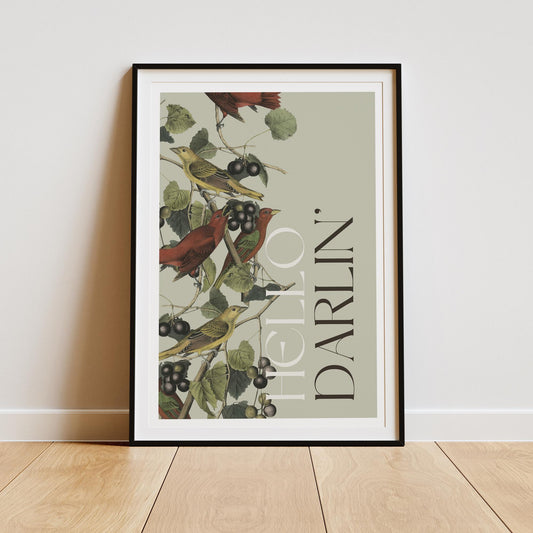 Hello Darlin' - 01 Poster: Botanical Art Print, Vintage-Inspired Nature Poster, Elegant Modern Home Decor, Muted Colours, Rustic Chic Decor
