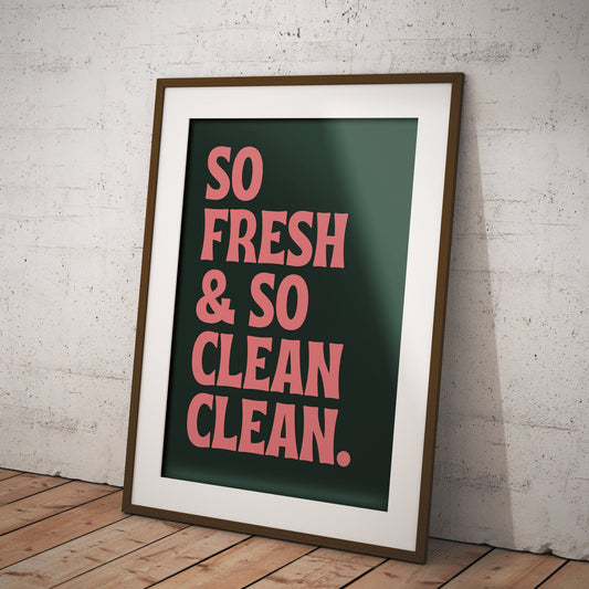 Fresh & Clean - Green And Pink Poster: So Fresh And So Clean Clean Print, Unique Home Decor, Cool Laundry room Print, Bathroom Quote Poster
