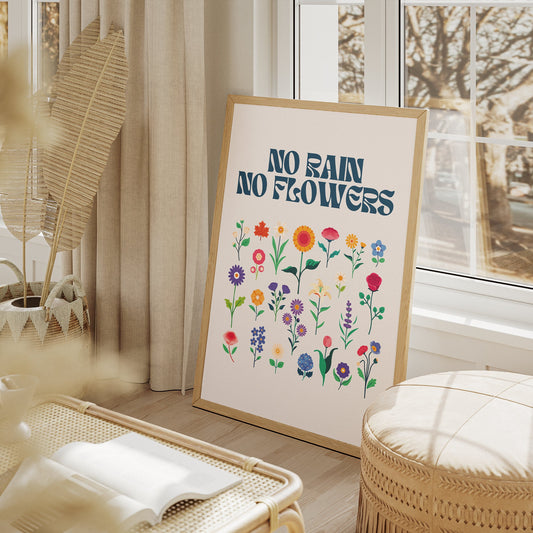 No Rain No Flowers Poster, Floral Poster, Home Decor, Flower Wall Art, Modern Poster Design, Living Room Poster