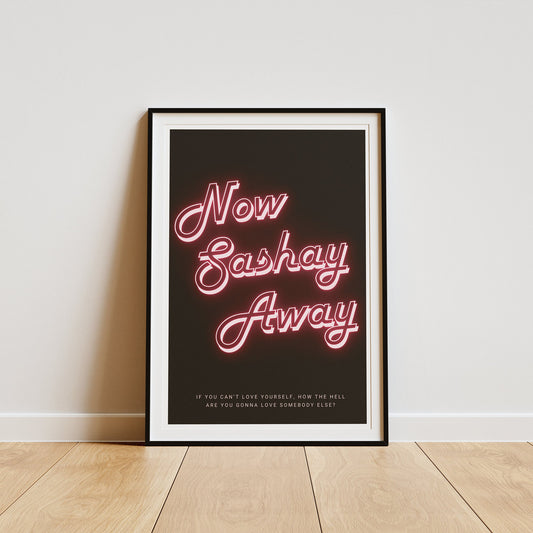 Sashay Away - Neon Poster: RuPaul's Drag Race Inspired Print, Iconic Quote Wall Art, Queer Home Decor, Drag Queen Gift, LGBTQ+ Poster