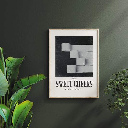 Sweet Cheeks - Toilet Roll Poster: Unique Bathroom Print, Toilet Poster, Bathroom Wall Art, Toilet Bathroom Poster, Cool Funny Home Decor