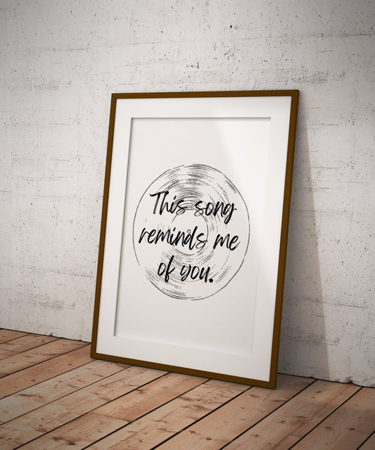 This Song - Vinyl Poster: Cute Music Quote Print - This Song Reminds Me of You - Music Lover Wall Art, Home Decor, Gallery Wall