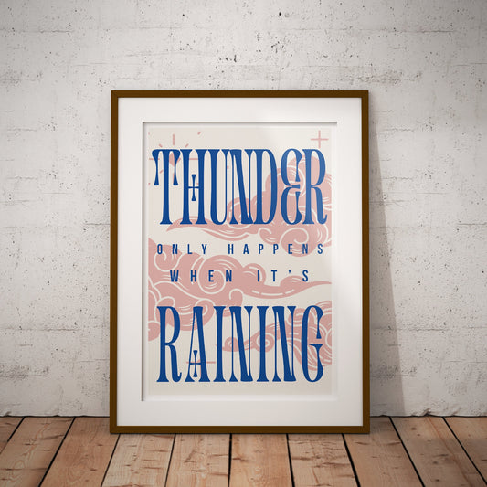 Dreams - Pink Clouds Poster: Fleetwood Mac, Thunder Only Happens When It's Raining, Lyric Print, Music Quote Poster, Home Decor Lyric Art
