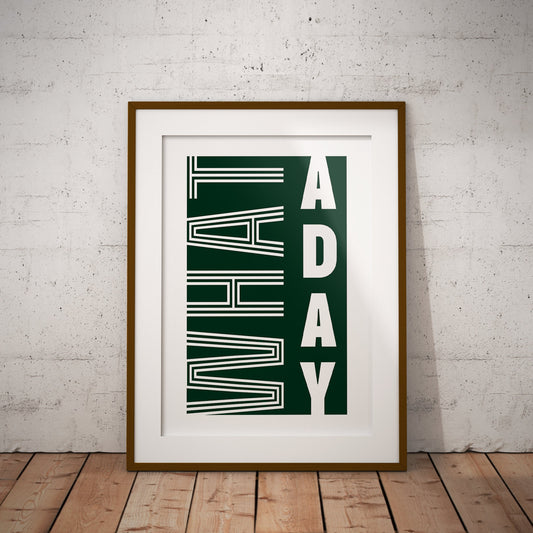 What A Day - Mid Century Poster: Funny Pop Culture Quote Print, Humorous Wall Art, Bold Typography Print for Home or Office Decor