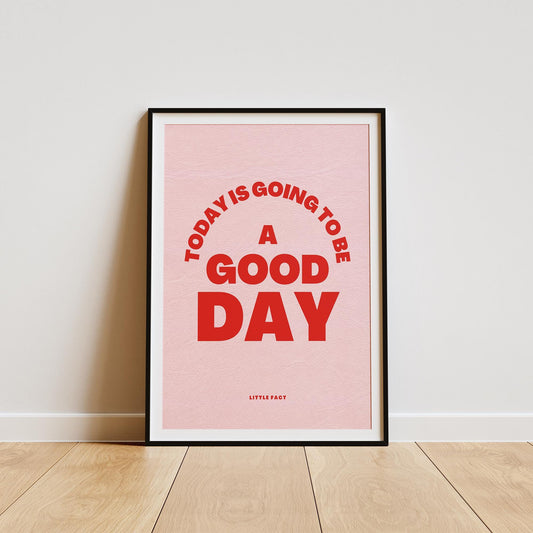 Today Is Going To Be A Good Day - Bold Pink Poster: Bathroom Print, Unique Home Decor, Cool Print, Positive Quote Poster, Home Wall Art