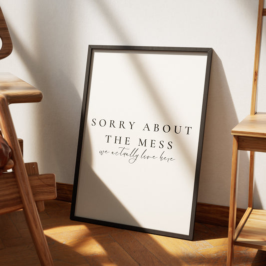 Sorry For The Mess - Fine Text Poster: Home Print, Unique Home Decor, Wall Art, High-Quality Print, Messy House Quote Print, Home Print