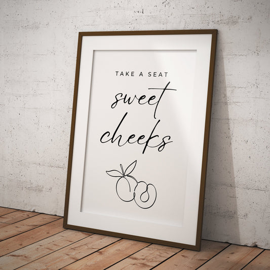 Sweet Cheeks - Peach Poster: Unique Bathroom Print, Toilet Poster, Bathroom Wall Art, Toilet Bathroom Poster, Cool Funny Home Decor