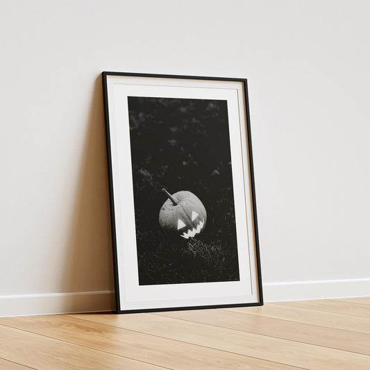 Pumpkin B&W Photography Poster: Seasonal Decor, Fall Wall Art, Spooky Vibes Print, Halloween Poster, Autumnal Home Decor Gift, Spooky Art