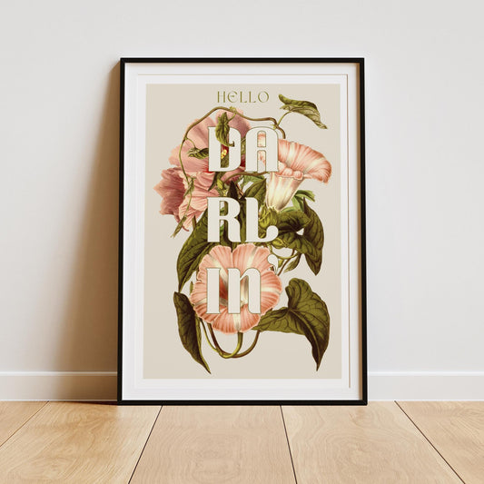 Hello Darlin' - 03 Poster: Botanical Art Print, Vintage-Inspired Nature Poster, Elegant Modern Home Decor, Muted Colours, Rustic Chic Decor