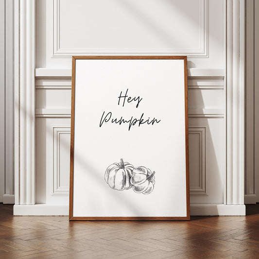 Hey Pumpkin Poster - 01 Poster: Pumpkin Print, Cute Halloween Decoration, Neutral Home Decor, Fall Wall Art, Cosy Autumnal Home Decor Gift