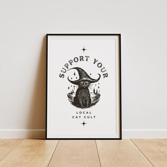 Local Cat Cult - Witch Cat Poster: Seasonal Decor, Fall Wall Art, Spooky Vibes Print, Halloween Poster, Autumnal Home Decor Gift, Spooky Art