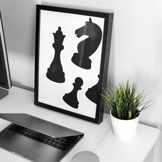 Chess Pieces Print: Chess Lover Poster, Black & White Home Decor, Game room, Wall Art Illustration Mid Century Modern Art