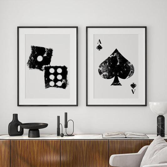Distressed Dice Poster: Abstract dice print, Minimalist Black & White Wall Home Decor, Trendy Game Room Wall art, Modern Art Home Decor