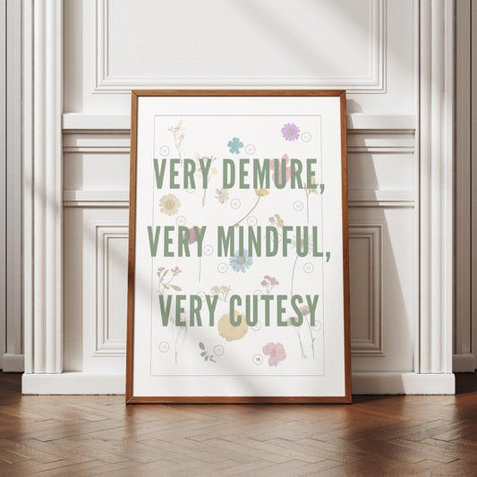 Very Demure, Very Mindful, Very Cutesy - 16 Poster: Trend Quote Print, Soft Girl Decor, Preppy Home Decor, Coquette Aesthetic, Modern Art