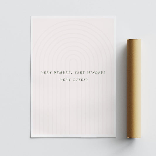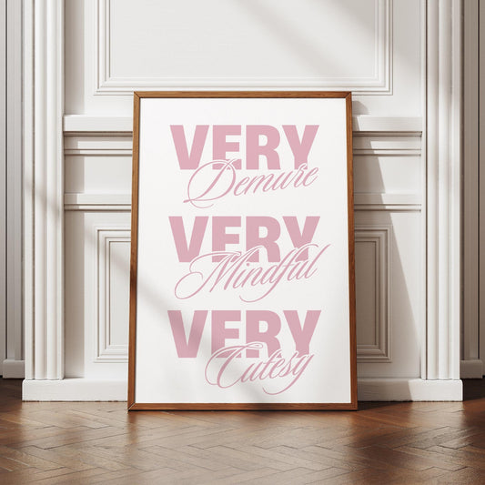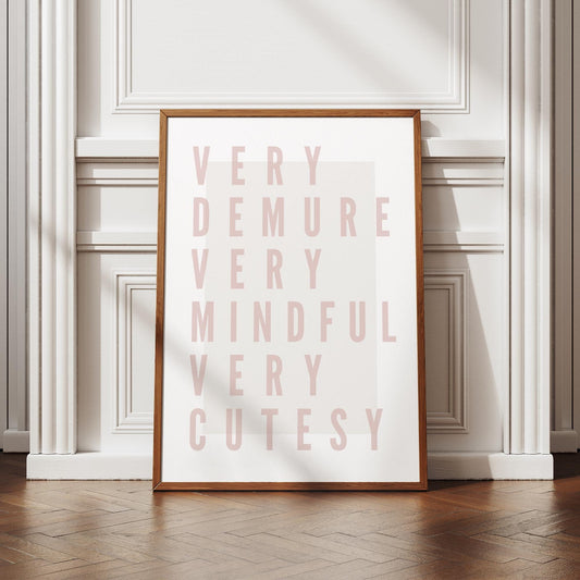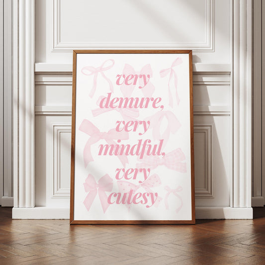 Very Demure, Very Mindful, Very Cutesy - 08 Poster: Trend Quote Print, Soft Girl Decor, Preppy Home Decor, Coquette Aesthetic, Modern Art