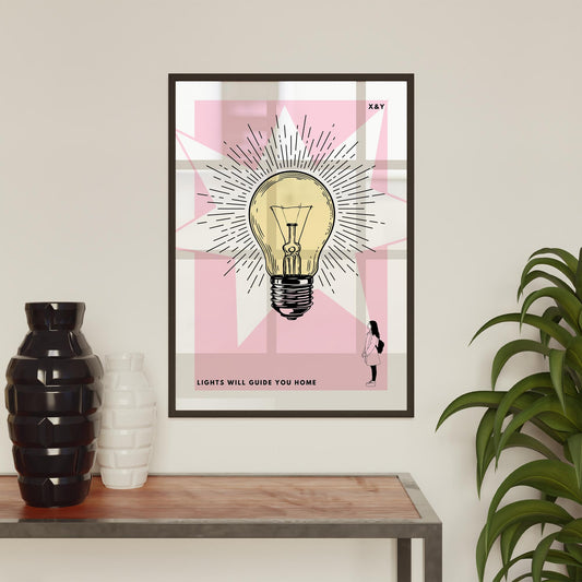 Lights Will Guide You Home Poster - Coldplay Inspired Wall Art, Pink Bulb Print, Quote Poster, Home Decor, Lyric Print, Music Lover Art