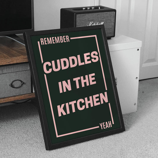 Cuddles in the kitchen - green poster: music inspired print, unique home decor, cool wall art, high-quality print, kitchen quote poster