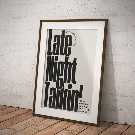 Late Night Talkin' - Bold & Black Poster: Harry Styles Song-Inspired Gloss Print, Quote Poster, Home Decor, Unique Gift Idea For Music Lover