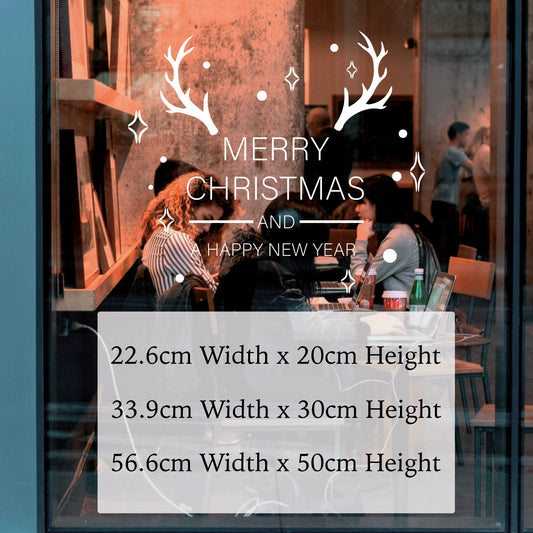 Christmas Shop Window Display Antlers Merry Christmas and Happy New Year Christmas Sparkles Santa, Christmas Home Decor, Seasonal Sticker