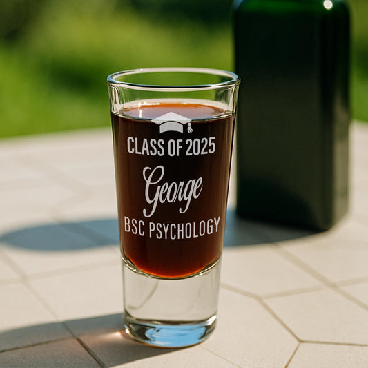 Personalised Graduation Shot Glass Class Of, Name & Degree | Custom Engraved Gift | Graduation Gift | Graduation Keepsake Glassware