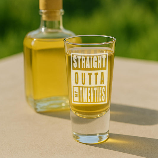Personalised Birthday Shot Glass | Funny Double-Sided "Straight Outta [Decade]" Engraved Shot Glass | Custom Birthday Gift for Him or Her