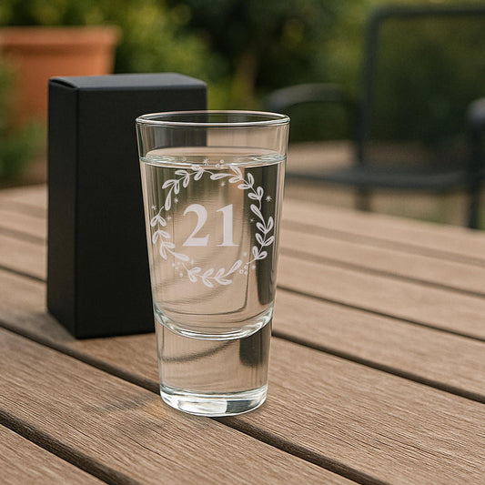 Personalised Birthday Shot Glass | Custom Age - Bold Petal Frame | Milestone Birthday Gift | Custom Engraved Keepsake for 18th Birthday