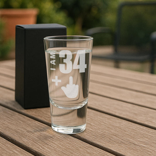 Personalised Birthday Shot Glass | Funny “I Am [Age] + Middle Finger Engraved Shot Glass | Custom Joke Gift Birthday Gift for Him or Her