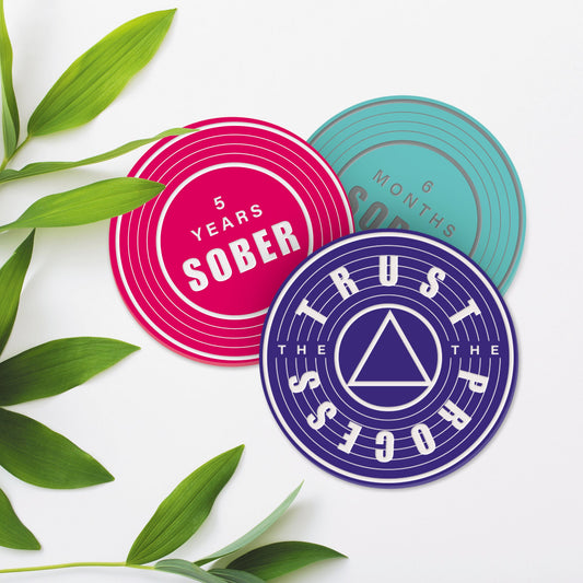 Trust The Process - Grooves Acrylic Sobriety Chip: Customisable Sober Time, Personalised Sobriety Coin, AA Token, Recovery Milestone Gift