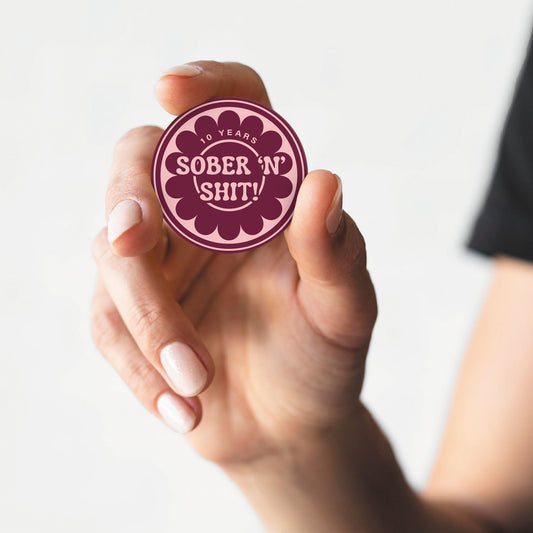 Sober 'n' Shit - Flower Acrylic Sobriety Chip: Customisable Sober Time, Personalised Sobriety Coin, AA Token, Recovery Milestone Gift
