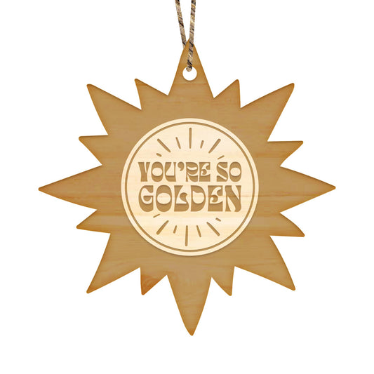 Cute You're So Golden Quote Hanging Sign Decor, Small Gift, Engraved Wooden Sun, Positive Plaque, Wall Hanging, Rear view Mirror Accessory
