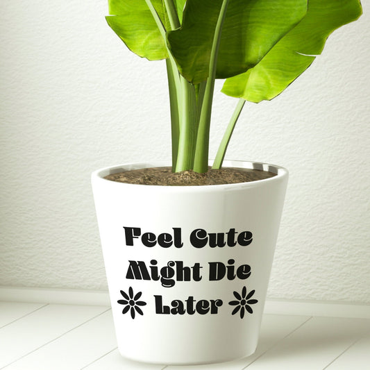 Feel Cute Might Die Plant Pot Vinyl Sticker - Funny Plant Gift, Quote Decor, House Plant Accessory, Quirky Unique Plant Flower Decal