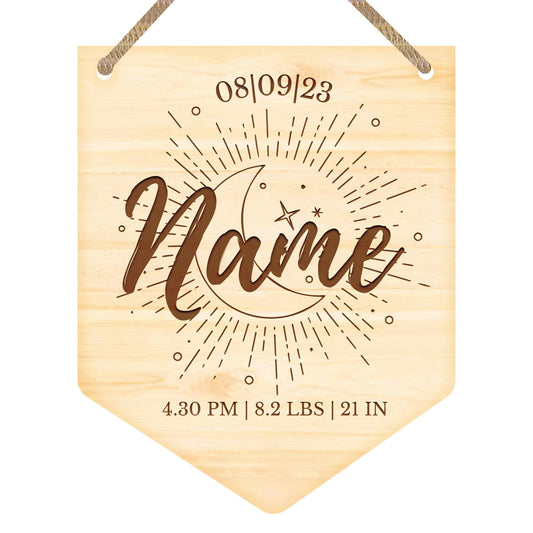 Baby Stats Personalised Hanging Sign - Moon Design, Cute Plaque, Custom Nursery Decor, New Born Baby Name Reveal, Birthday Hospital Display