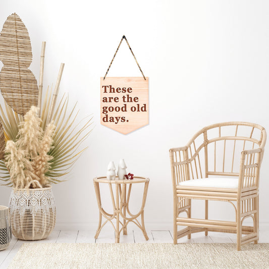 These Are The Good Old Days - Hanging Sign, Engraved Wooden Boho Plaque, Minimal Quote Cosy Home Decor - House Gift