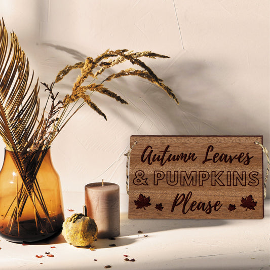 Autumnal Leaves & Pumpkins Please Hanging Sign - Minimal, Modern Halloween Sign Home Decor, Cosy Aesthetic, Autumnal Vibes Decorative Plaque