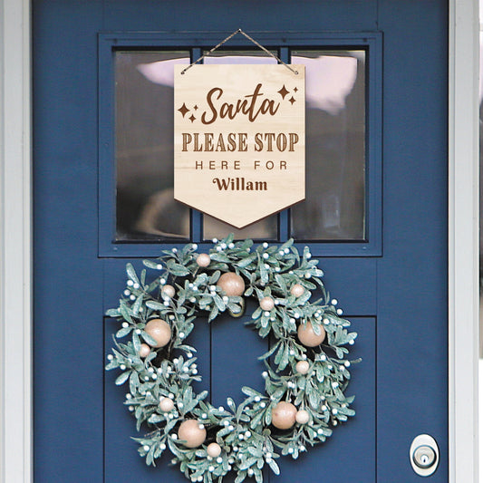 Santa Stop Here Sign - Personalised Hanging Plaque For Kids, Custom Xmas Santa Home Decor For Children, Christmas Eve Front Door Sign