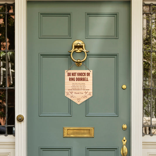 Do Not Knock Or Ring The Bell Front Door Sign, Wooden Door Plaque, Sleeping Baby Sign, Delivery Sign, No Need To Get The Dogs Involved
