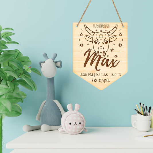 Baby Stats Personalised Hanging Sign - Star Sign, Cute Plaque, Custom Nursery Decor, New Born Baby Name Reveal, Birthday Hospital Display