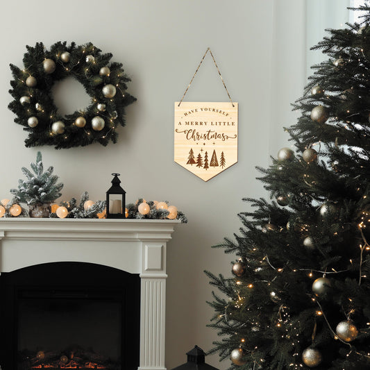 Merry Little Christmas Plaque - Cosy Christmas Hanging Sign, Rustic Wooden Xmas Home Decor, Cute Christmas Quote, Seasonal Winter Sign